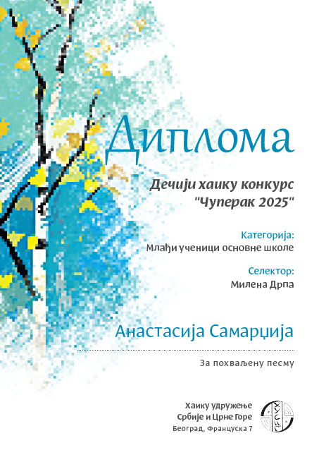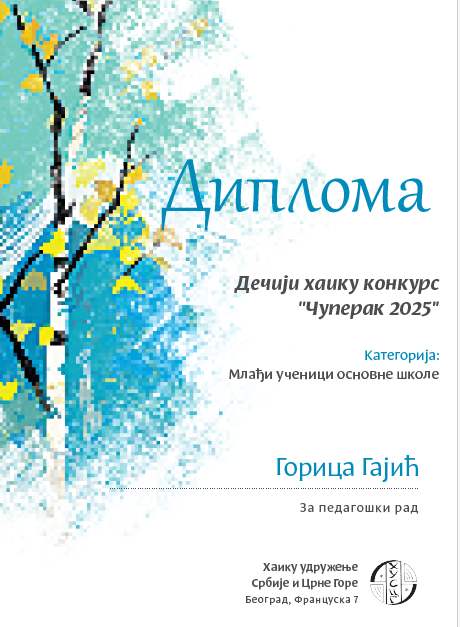Хаику стихови наших ученица објављени су у Зборнику: Дечији хаику конкурс “Чуперак 2025”, Нови Сад, 6. октобар 2025: