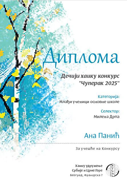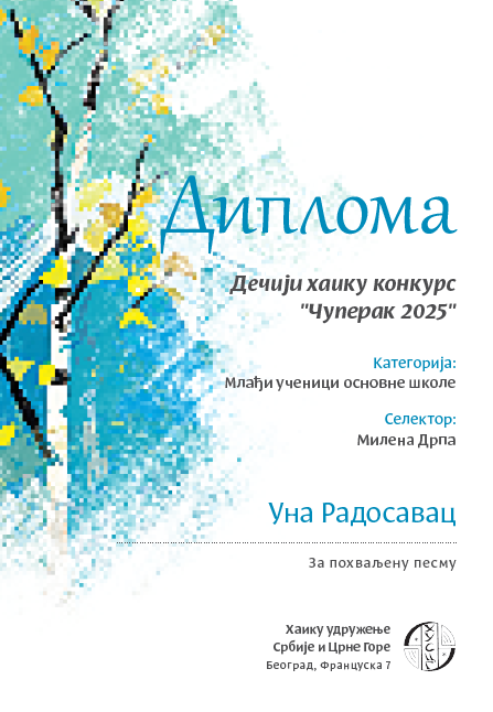 Хаику удружење Србије и Црне Горе – ХУСЦГ, са сједиштем у Београду, расписало је у октобру 2024. године позив за учешће на Дечијем хаику конкурсу ,,Чуперак 2025”.