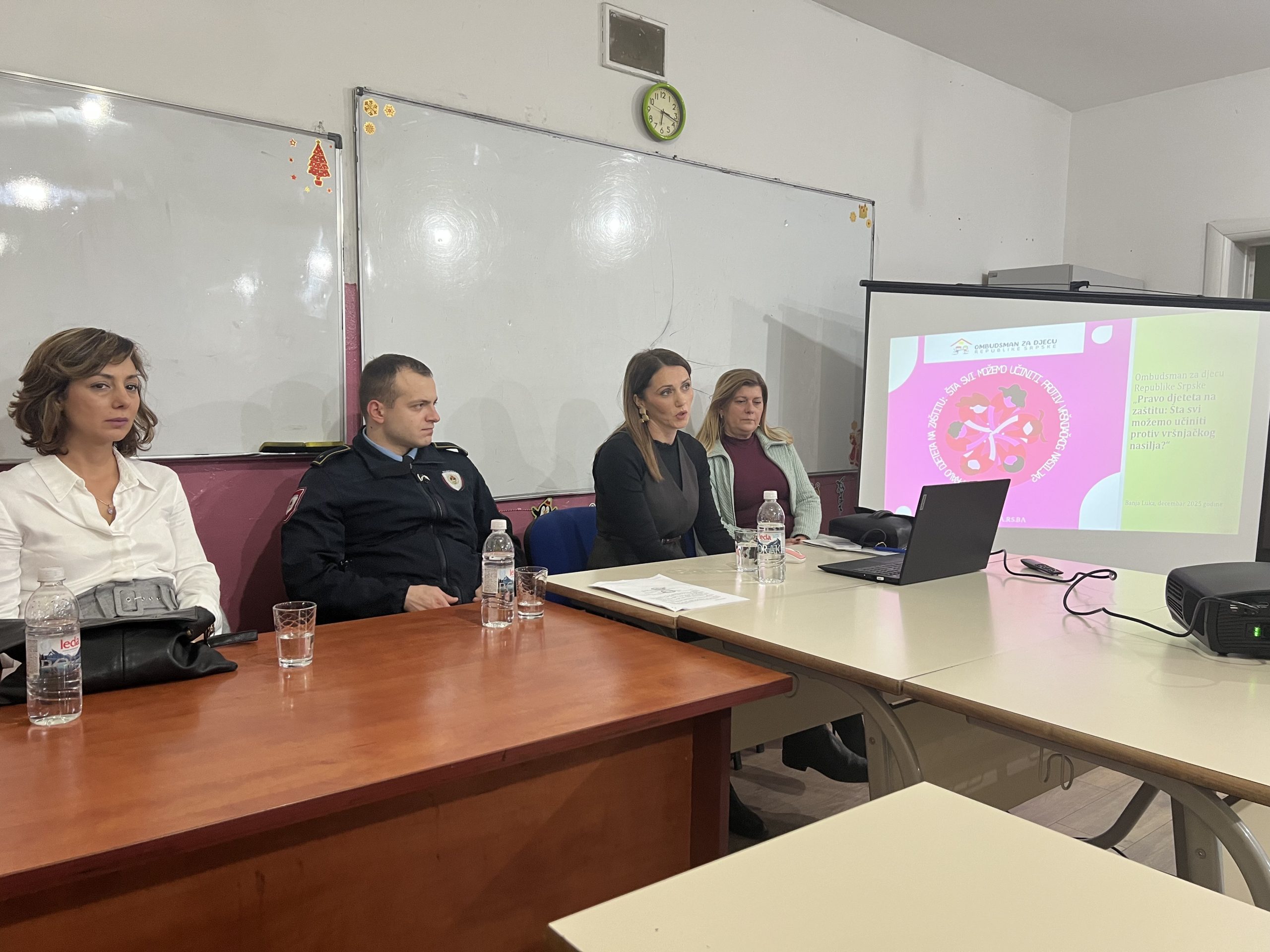 Предавање је организовано у склопу пројекта покренутог од стране Министарства просвјете и културе: ,,Школа која чује“. Предавање су реализовали: замјеник ОМБДУСМАН-а за дјецу Андреа Станковић, представница Центра за социјални рад – психолог Марија Јаковљевић и представник Полицијске станице – Центар – Борко Бјелошевић.